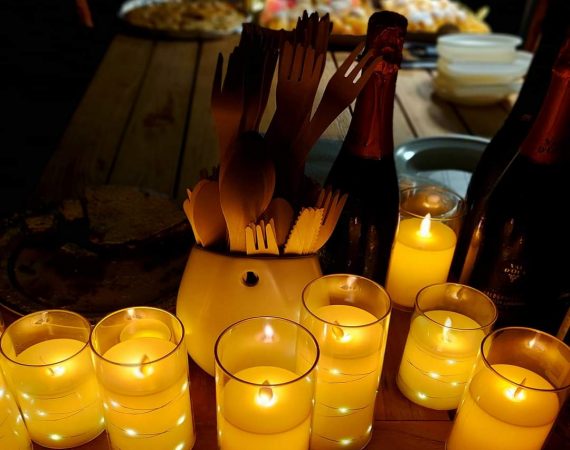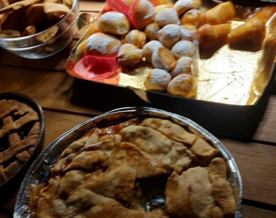 L’anno scorso ognuno ha portato qualcosa: formaggi, dolci, focacce, parmigiane di melanzane, porchetta, torte salate, involtini vietnamiti, mutabbal, lasagne vegetariane… Una tavolata ‘multietnica’ strepitosa.