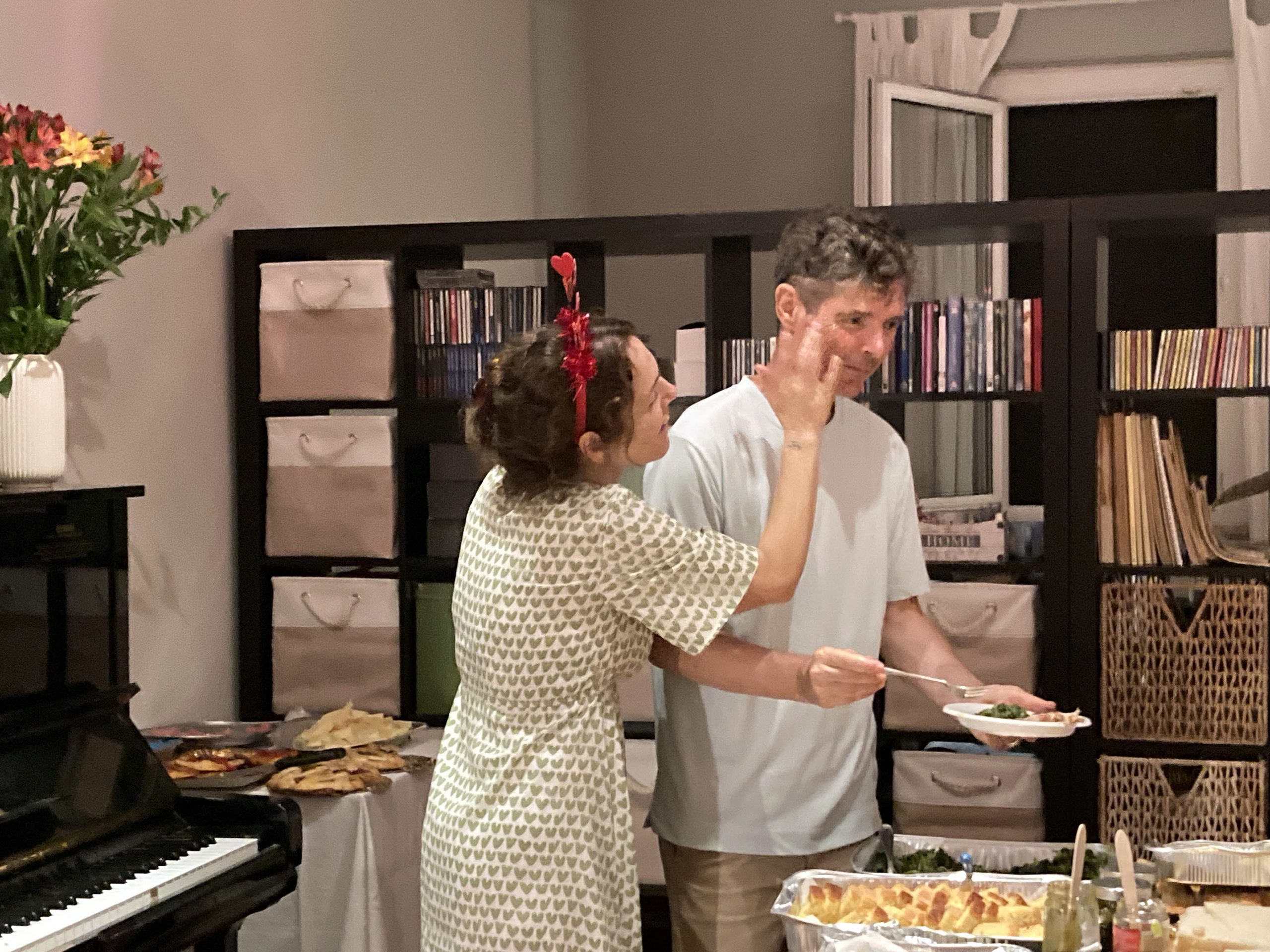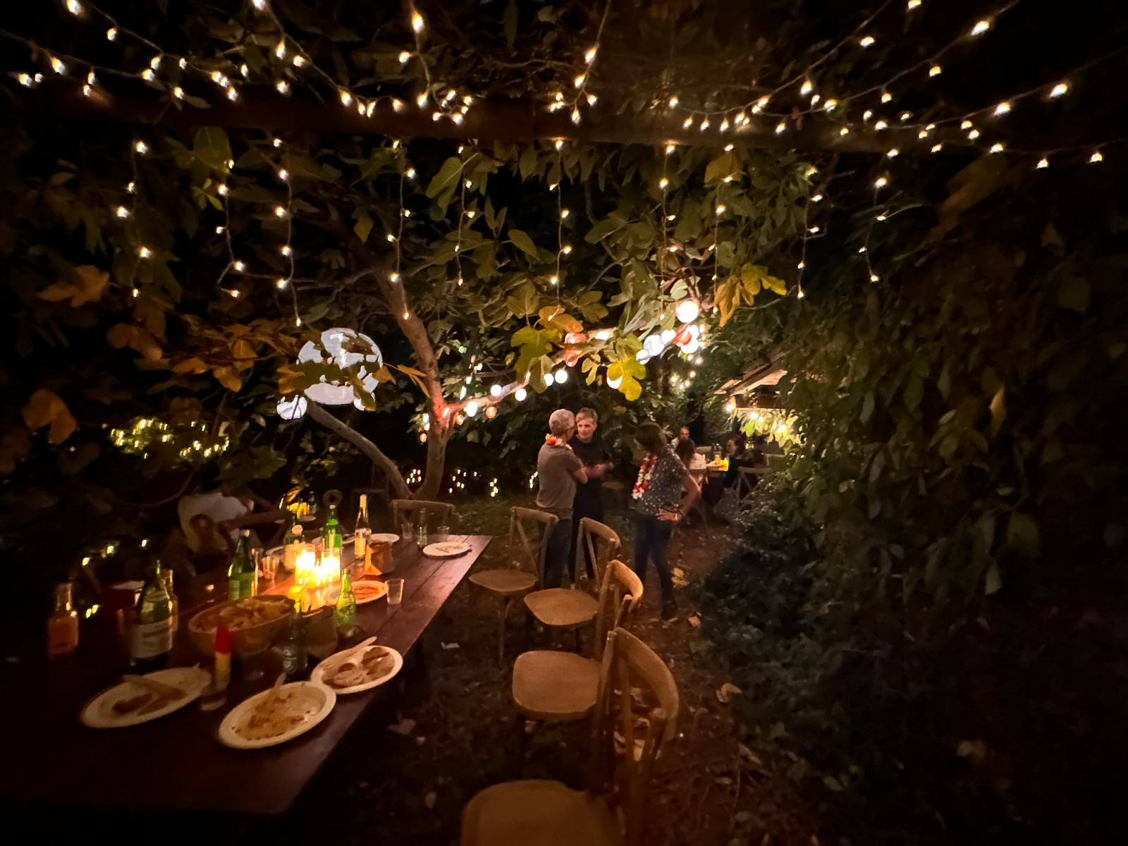 L’anno scorso ognuno ha portato qualcosa: formaggi, dolci, focacce, parmigiane di melanzane, porchetta, torte salate, involtini vietnamiti, mutabbal, lasagne vegetariane… Una tavolata ‘multietnica’ strepitosa.